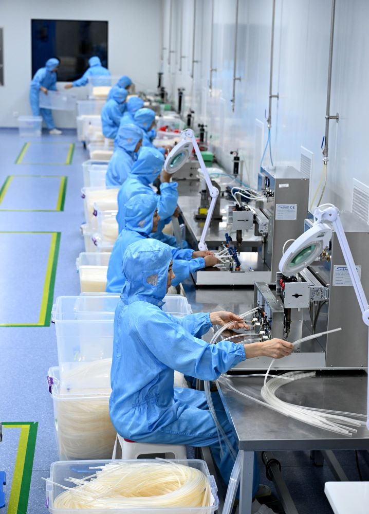 Мы своими глазами увидели все этапы технологического процесса: линию медицинской экструзии, литье под давлением, фрезеровку, сборку, упаковку и стерилизацию, которая проводится в условиях чистого производства класса Н14. Ежегодно здесь выпускают около 4,5 млн единиц продукции, в том числе все виды трубок, которые существуют в медицине, что покрывает 99% потребностей медицинских учреждений Казахстана.