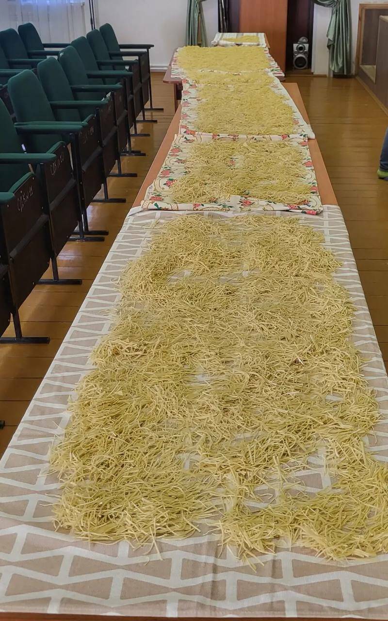 Очередную партию помощи представители старшего поколения Атясовского сельского поселения подготовили 7 апреля. На этот раз сельчане занялись изготовлением домашней лапши для отправки на передовую, сообщила сельский библиотекарь Мавжида Гарипова.