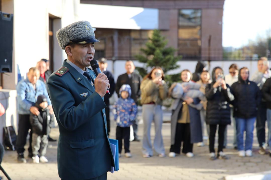 С напутственным словом к будущим десантникам обратился представитель департамента по делам обороны города Астаны полковник запаса Гани Артыков.