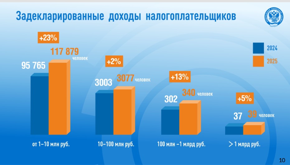 Ещё один способ увеличить состояние, помимо акций, — это банковские депозиты. В 2025-м проценты были очень привлекательными, многие ими воспользовались. Если в 2024-м ФНС собрала 2,1 млрд рублей налога на доходы от вкладов в банках, то по итогам прошлого года — уже 7,5 млрд рублей. «Очень сильный рост. Но были высокие процентные ставки, поэтому многие пользовались хорошей возможностью увеличить свои доходы за счёт высоких процентных ставок по вкладам в банках», — отметил спикер.