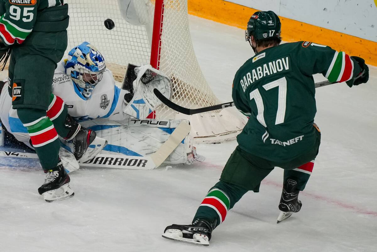 Шайба Александра Барабанова пришла, по сути, после первой подготовленной атаки «Ак Барса» за стартовый отрезок игры: 14–9 перебросали минчане казанцев за первый период, но Максим в этот вечер был в огне. По итогу игры 22-летний вратарь отразил все 37 бросков по своим воротам.