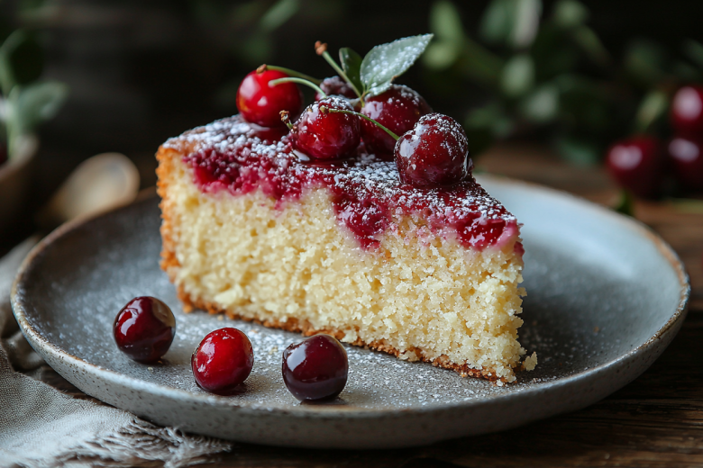 Этот пирог напоминает мне о теплом и уютном лете в деревне. Простой, невероятно нежный и с кислинкой сочной вишни — он таял во рту за секунды, и мы всегда просили добавки.