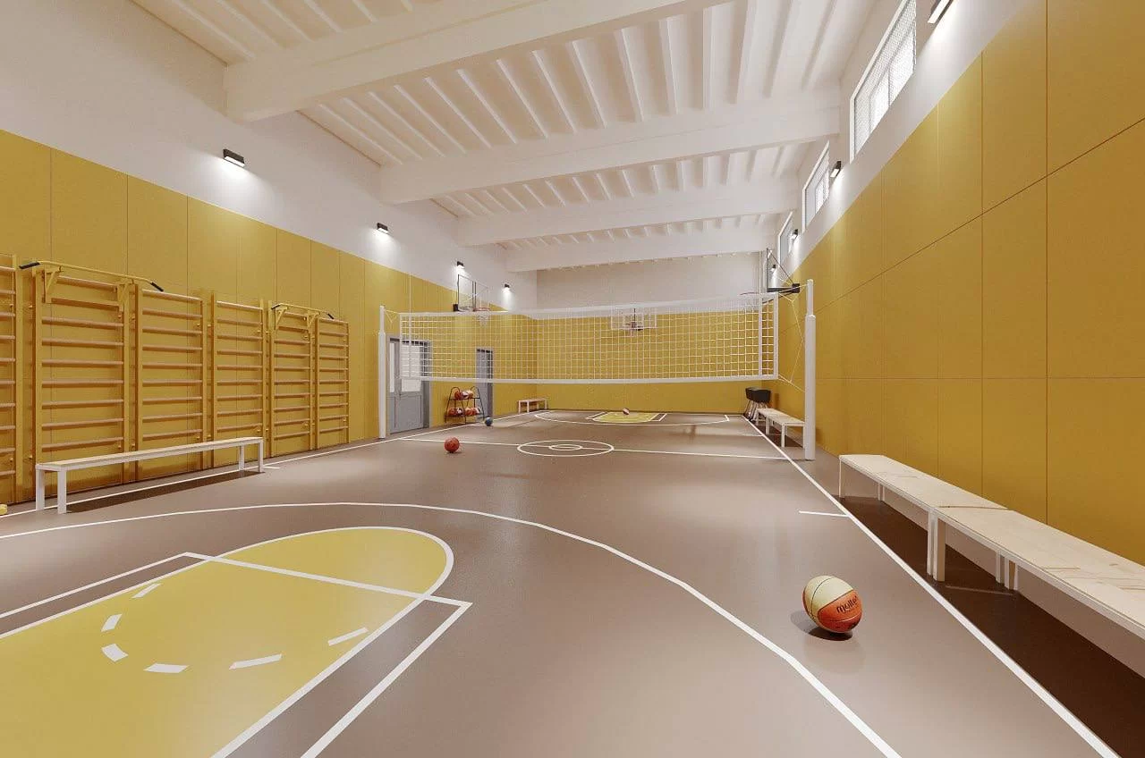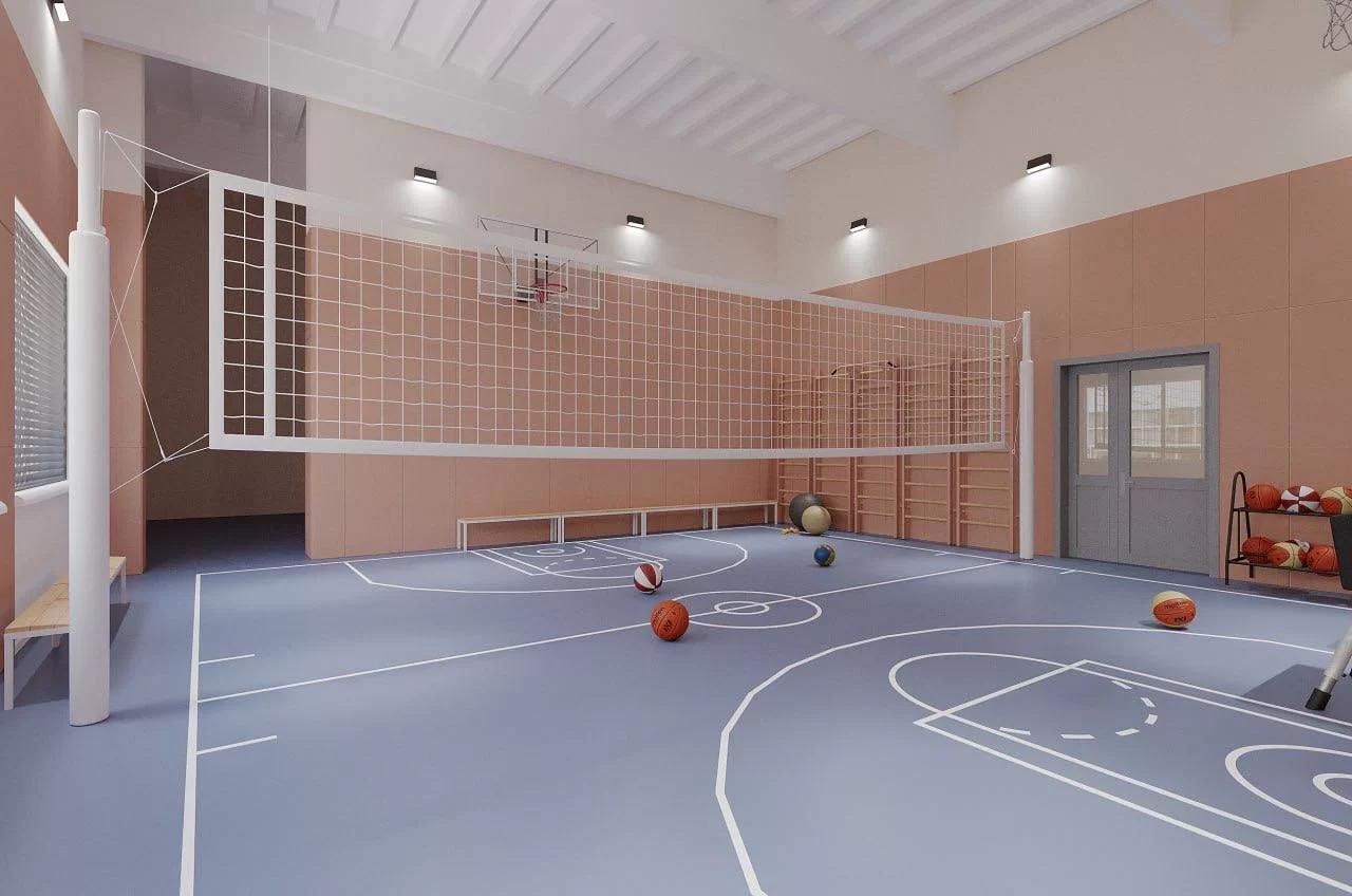 - Создание двух спортивных залов: для старших классов и начальной школы;