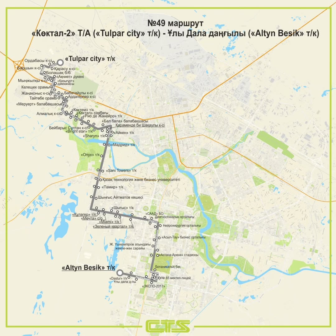 С 6 декабря в Астане в схемы движения городских автобусов № 49 и 84 добавляется новый остановочный пункт “Алтын бесік”, передает наш сайт.